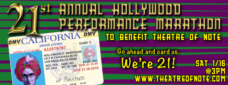 Sat. 1/16/16 Theatre of Note Performathon – closing out the 6:30-8pm segment. Marathon runs 3pm to Sunday morning. $20 is good for the whole thing.